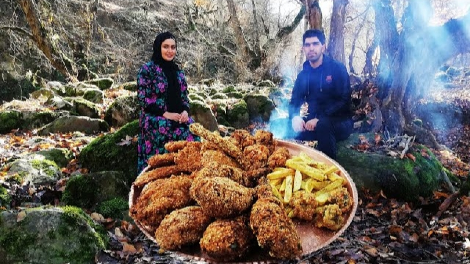 مرغ و قارچ سوخاری تو دل جنگل کنار رودخونه