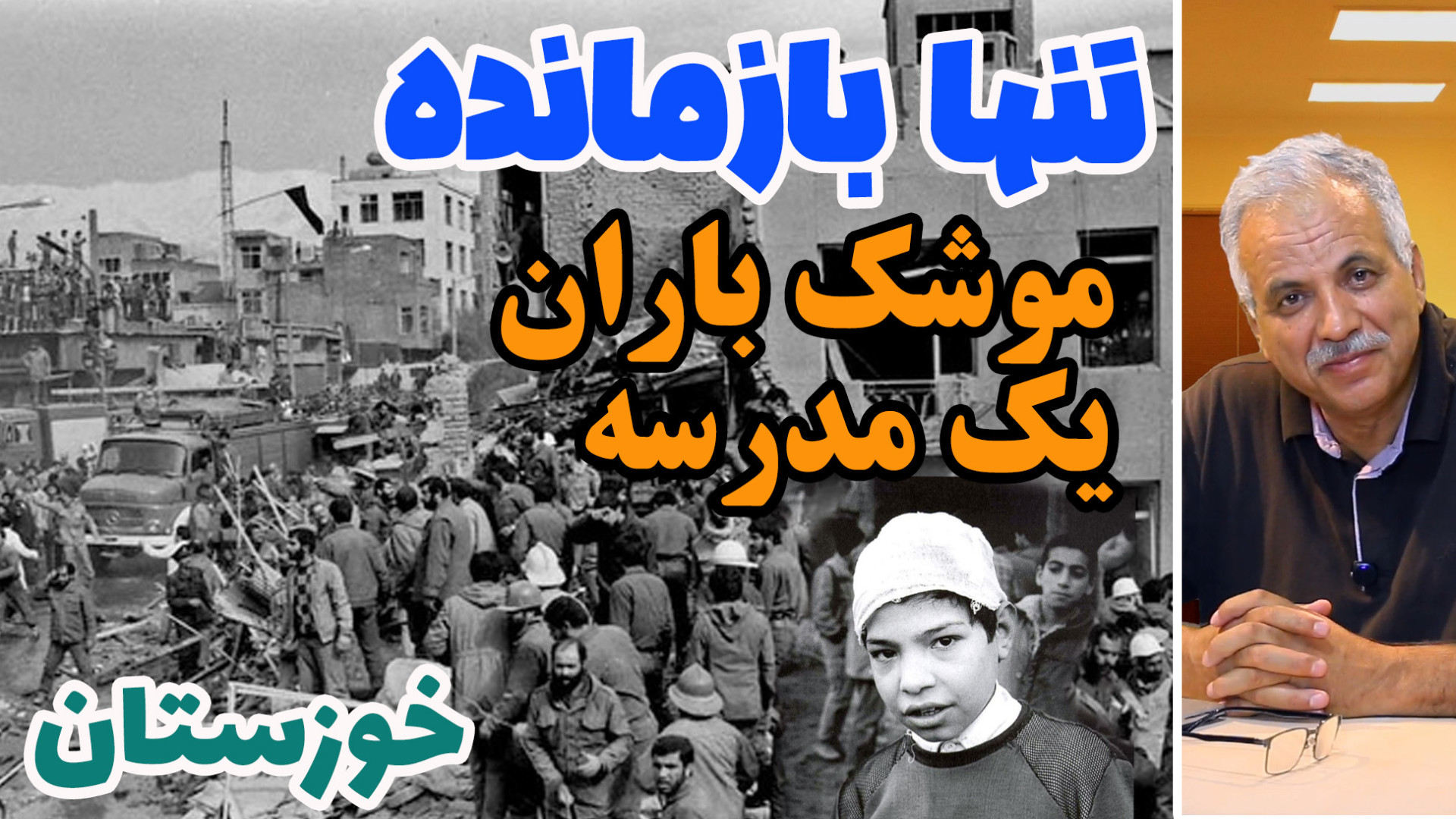 در اوایل جنگ شهرها در جنگ ایران و صدام یکی از اولین موشکها به مدرسه ای در بهبهان اصابت کرد. در این حمله 74 نفر شامل 69 دانش آموز و چندین معلم در همان لحظات اولیه کشته شدند . اما از آن میان تنها یک دانش آموز به طرز موجزه آسایی باقی ماند . بعد از حدود 40 سال ، مصاحبه ای داشتم با این تنها بازمانده. و البته با نگاهی به سرنوشت چند نوجوان دیگر به قصد تجربه آموزی از مسیری که تا امروز طی شده است . 00:00:23 اولین تکه صحبت جمشید ( بازمانده واقعه ) 00:01:46 چرا مصاحبه به صورت سیاه و سفید است ؟ 00:02:25 رار از طریق دیوار مدرسه 00:04:37 گرفتن جمشید و بردن به دفتر مدرسه 00:06:21 احساس جمشید از لحظه برخورد موشک 00:07:01 پرت شدن به خانه همسایه 00:08:12 خوابی که دیده بوده 00:09:57 دستگیری هنگام فرار از مدرسه 00:10:25 صداهایی که بعد از انفجار از محیط می شنیده 00:11:02 وضعیت جمشید در سردخانه کنار سایر کشته ها 00:12:08 کشف زنده بودن جمشید 00:12:58 وضعیت در بیمارستان شیراز 00:14:34 وضعیت معلم کشته شده در کلاس 00:15:52 روزنامه ان روز واقعه 00:18:42 میزان جراحت جمشید 00:19:22 جستجوی جمشید