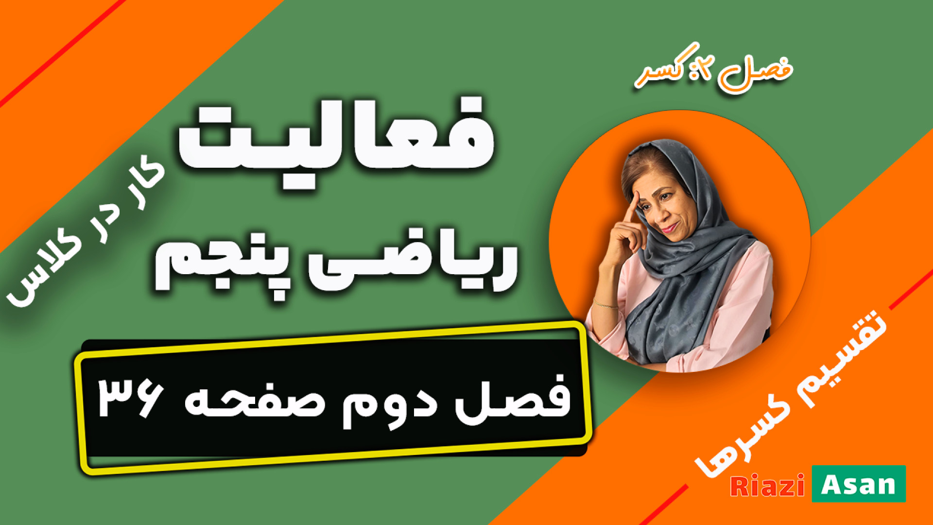 سلام به همه دوستان عزیز خودم در پایه پنجم ابتدایی، امیدوارم حالتون خوب باشه. توی این ویدئوی آموزشی با جواب فعالیت کتاب ریاضی پنجم دبستان صفحه ۳۶ در خدمت شما هستیم. این صفحه یه کار در کلاس مهم هم داره که براتون توضیح دادم. موضوع اصلی این صفحه از کتابتون آموزش تقسیم کسرهاست. اگه شما هم میخوای جواب همه فعالیتها و کار در کلاسهای ریاضی پنجم ابتدایی رو داشته باشی حتماً این کانال رو دنبال کن. اگه میخوای توی درس ریاضی پنجم نمره عالی بگیری میتونی یه سر به وبسایت ریاضی آسان بزنی و توی دوره جامع ریاضی پایه پنجم شرکت کنی. https://riaziasan.com/class5/ ----------------------------------------------------- کانال ایتا ریاضی آسان: https://eitaa.com/riaziassn ------------------------------------------------------- کانال یوتیوب ریاضی آسان: https://www.youtube.com/channel/UCfToII6IDo3iImZnkdUx5fQ