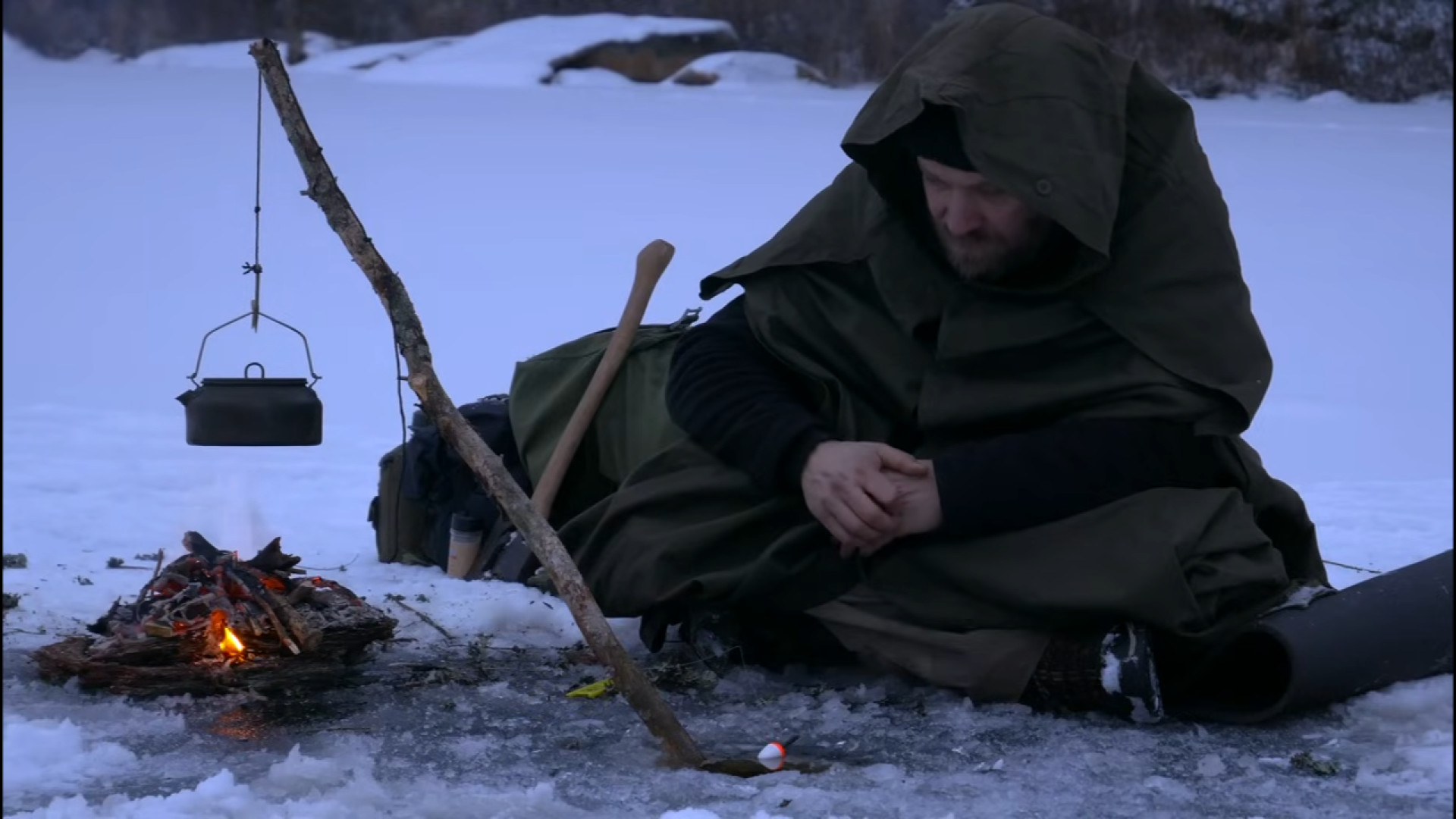 گمپینگ بقا در جنگل برفی و ماهیگیری با شکستن یخ دریاچه یخ زده برپایی چادر و آتش با هیزم و چای آتیشی