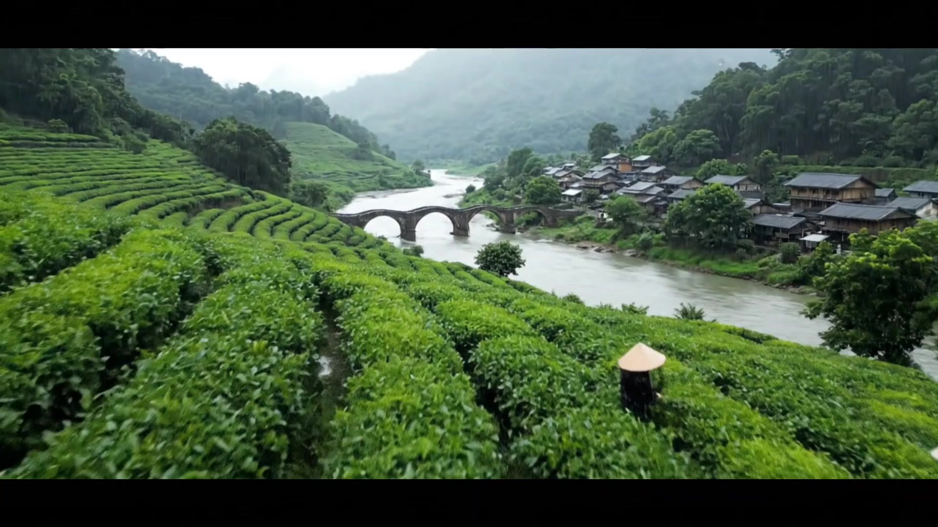 نمای pov از کار و زندگی در روستای بارانی و باغ چای