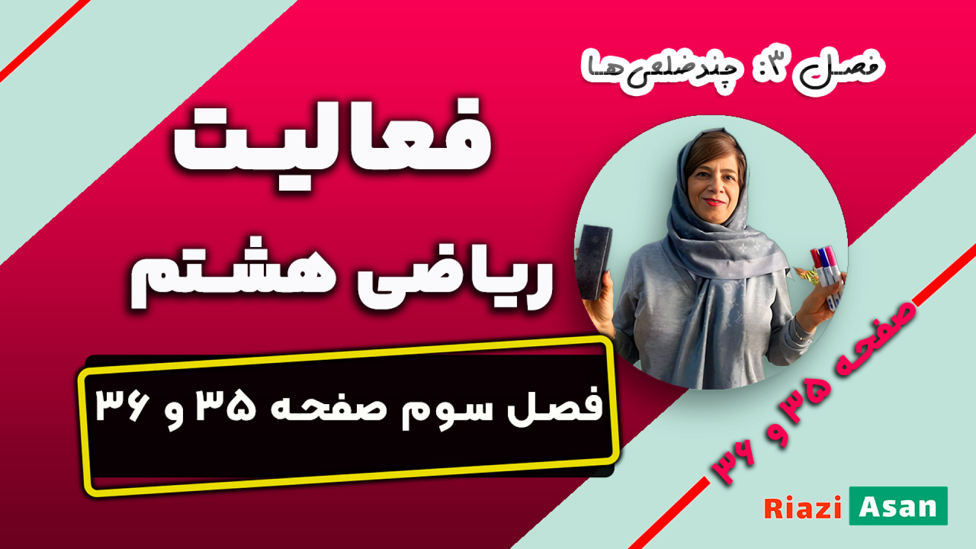 سلام به شما همراهان کانال ریاضی آسان، امیدوارم حال همه شما دوستان عزیزم عالی باشه. توی این ویدئوی آموزشی با جواب فعالیت ریاضی هشتم صفحه ۳۵ و ۳۶ در خدمت شما عزیزان هستم. این فعالیت مربوط به فصل سوم کتاب ریاضی شما یعنی فصل چندضلعیهاست. موضوع اصلی این فعالیت روابط بین خطوط موازی، مورب و عمود است. من رویا سلیمی هستم و توی این کانال همه تمرینها، فعالیتها و کار در کلاسهای کتاب ریاضی پایه هشتم رو بهتون آموزش میدم. پس اگه میخوای جواب تمام تمرینها، فعالیتها و کار در کلاسهای کتاب رو داشته باشی، حتماً کانال آپارات ریاضی آسان رو دنبال کن. همینطور میتونی توی دوره جامع آموزش ریاضی هشتم ما شرکت کنی. پس همین الان وارد وبسایت ریاضی آسان بشو و ثبتنام کن: https://riaziasan.com/class8/ -------------------------------------------------------------------- کانال ایتا ریاضی آسان: https://eitaa.com/riaziassn -------------------------------------------------------------------- کانال یوتیوب ریاضی آسان: https://www.youtube.com/@riaziasan