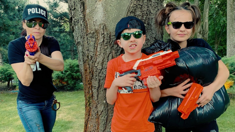 برنامه کودک دن و تفنگ بازی با مادر و خواهر در پارک