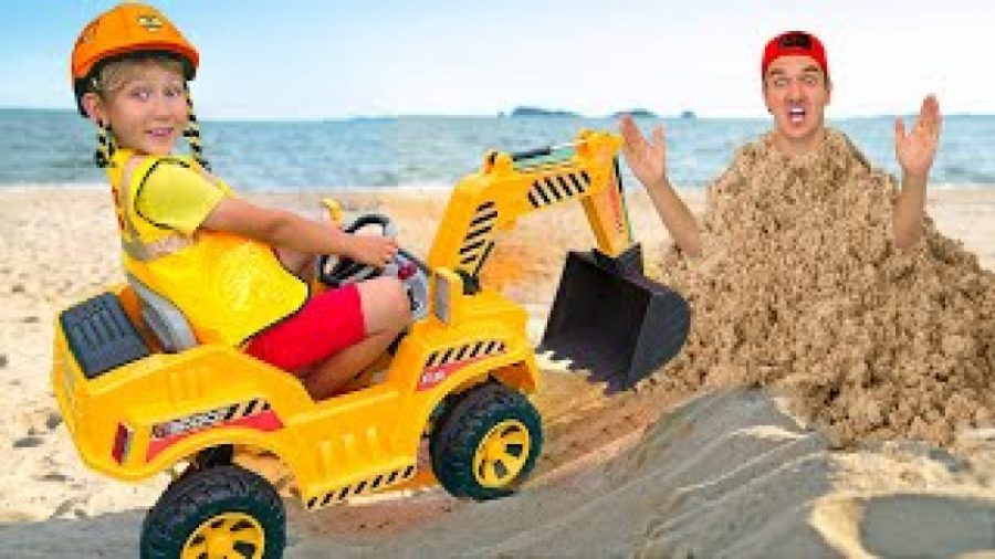 ماشین بازی با سنیا : بیل مکانیکی در ساحل شنی