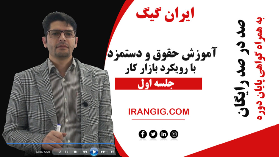 اولین جلسه از دوره ی جامع آموزش حقوق و دستمزد با رویکرد بازار کار برای دیدن ویدیو های بیشتر به وب سایت https://irangig.com/salary مراجعه کنید .