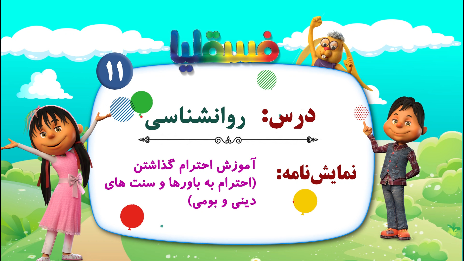 در این ویدیو کودک به کمک نمایش عروسکی یاد می گیرد در همه زمینه ها باید فرهنگ احترام گذاشتن را رعایت کند. از جمله احترام به باورها و سنت های دینی و بومی. کودک باید علاوه برشناختن باورها و سنت های دینی و بومی به جزییات آن ها نیز توجه داشته و به کسانی که سنت ها را انجام می دهند احترام بگذارد. مثلاً وقتی کسی غذای نذری به او می دهد از وی تشکر و قدردانی نموده و بابت جبران آن شیرینی یا گل در ظرف غذای نذری گذاشته و به نذری دهنده برگرداند. کودک نباید برچسب منفی به عقاید و سنت ها زده و همواره به آن ها احترام بذارد.