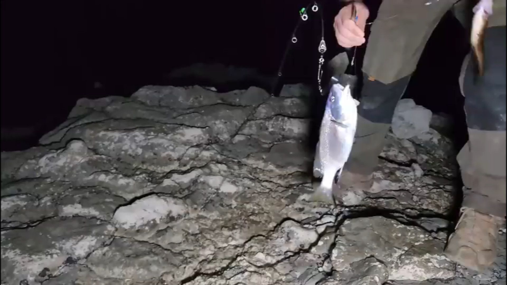 ماهیگیری با قلاب ماهیگیری در یک شب استثنایی در سواحل صخره ای جنوب به همراه یک قهوه ناب با سگم