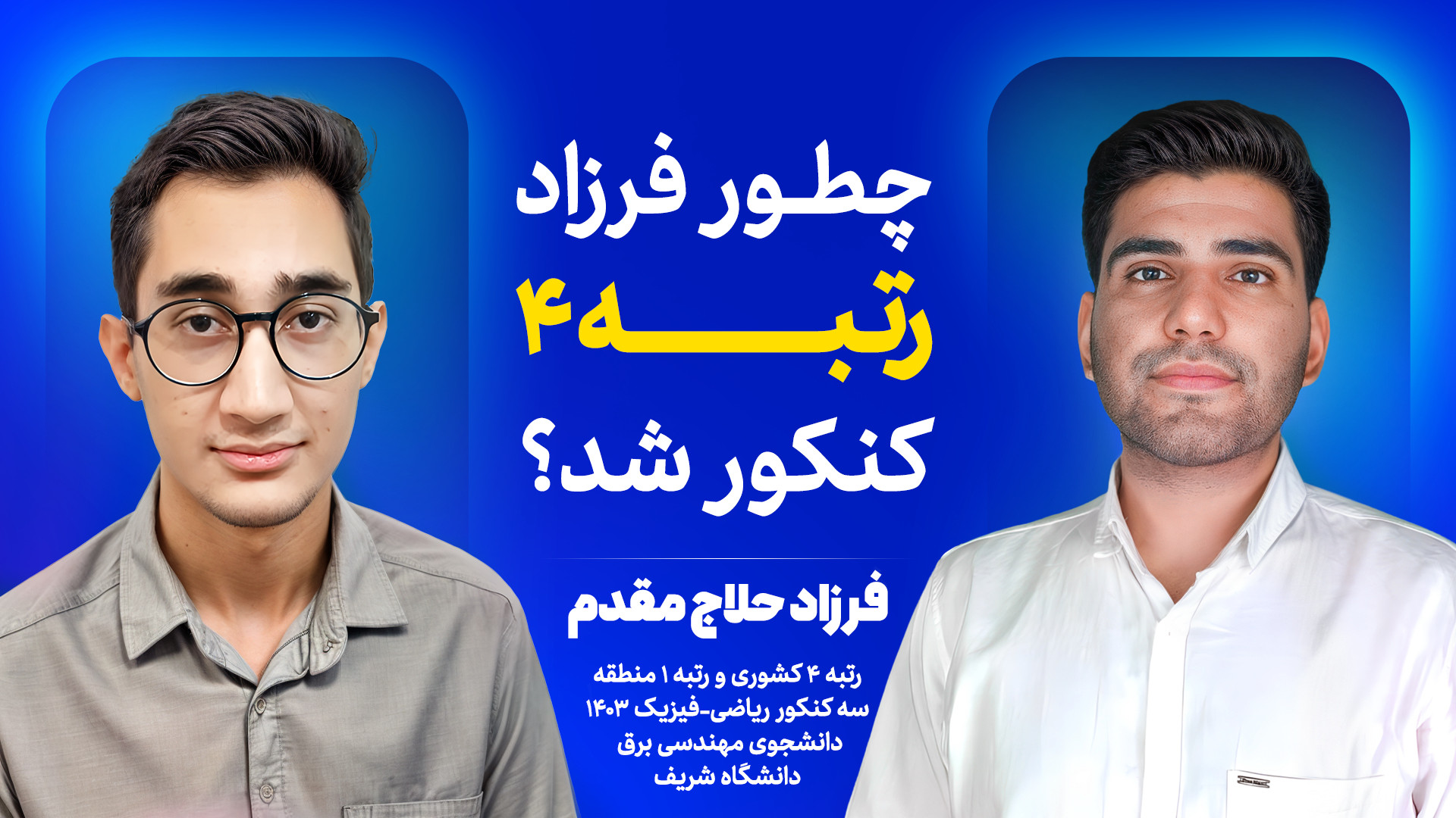 ️ توی این قسمت از پادکست ریاضی من، میزبان یکی از رتبههای برتر کنکور ریاضی هستیم: فرزاد حلاج مقدم – رتبه ۴ کشوری کنکور ریاضی ۱۴۰۳. 00:00 مقدمه 00:25 معرفی 00:51 کی به رشته ریاضی علاقه مند شدی؟ 01:35 چه کسی یا چه چیزی این وسط الهام بخش برات بود ؟ 02:01 دوران دبیرستان و فضای کنکور چطور بود برات ؟ 02:42 برنامه ریزی برای درس خوندنت چی بود ؟ 03:10 برای مطالعه و آزمون از چه منبع یا دوره ای استفاده میکردی؟ 03:56 سخت ترین لحظه کنکورت چی بود ؟ 04:28 اگه ناامید میشدی از چه طریقی برای خودت انگیزه ایجاد میکردی ؟ 05:02 وقتی کارنامه کنکورتو دیدی واکنشت چی بود ؟ 05:59 کدوم دانشگاه و کدوم رشته مهندسی رو انتخاب کردی و چرا ؟ 07:14 اگه بخوای به کسی مهندسی برق رو معرفی کنی چطور معرفی میکنی؟ 08:27 دوست داری کدوم گرایش مهندسی برق بری ؟ 08:48 از بین درسایی که خوندی با کدوم ارتباط برقرار کردی و ازش خوشت اومد ؟ 09:40 ریاضیی که تو دوران دبیرستان خوندی چقدر الان به کارت میاد ؟ 10:42 تفاوت اصلی دانشگاه با دوران اصلی کنکور خودت چیه ؟ 11:30 هدفت برای آینده چیه؟ 12:09 به نظرت مهندسی برق در آینده چطور خواه