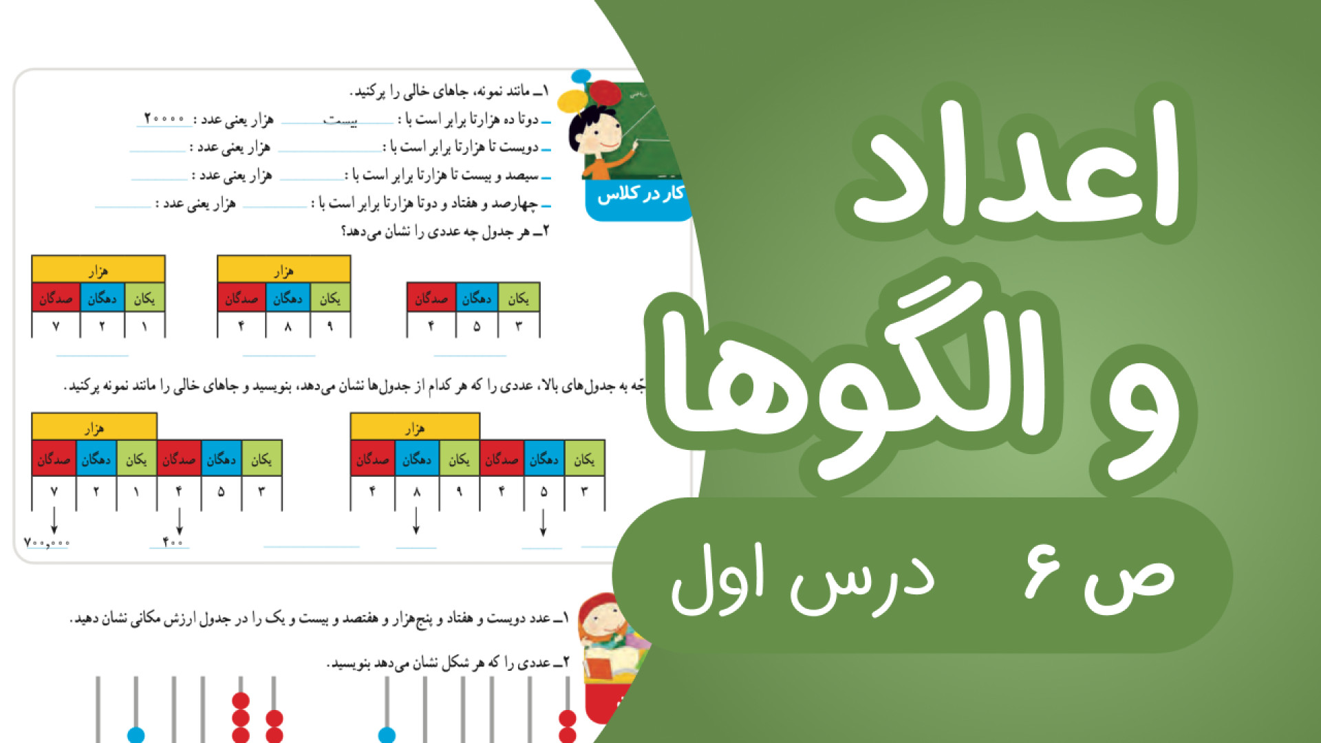 سلام به همه نابغه‌های کوچولو! این ویدیو مخصوص شماست که می‌خواید با کمک خانم معلم زهرا خیاط، کار در کلاس صفحه 6 کتاب ریاضی چهارم ابتدایی رو یاد بگیرید. خانم خیاط با حوصله و توضیحات ساده، همه سوال‌ها رو براتون حل می‌کنه تا ریاضی براتون شیرین و آسون بشه. اگه دوست دارید به راحتی درس‌هاتون رو بفهمید و کلی چیزای جدید یاد بگیرید، همین الان ویدیو رو ببینید!