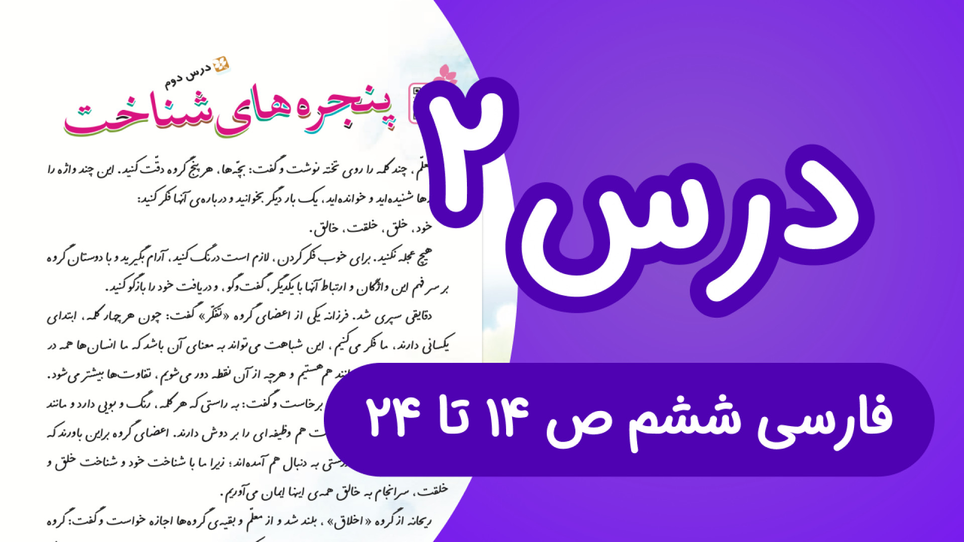 و حالا میریم سراغ درس دوم، یعنی پنجره های شناخت. در این ویدیو اول روخوانی درس انجام میشه و بعد کلمات سخت رو به صورت جداگانه بررسی میکنیم، بعدش هم میریم سراغ تمرینات این درس، گوش کن و بگو، بخوان وحفظ کن، بخوان و بیاندیش و کارگاه درس پژوهی. یعنی با دیدن این ویدیو کل درس دوم رو میتونید یاد بگیرین و مسلط بشین. راستی ویدیوی هر کدوم از این بخش ها به صورت جداگانه هم در کانال مدرسه نارنگی موجوده.