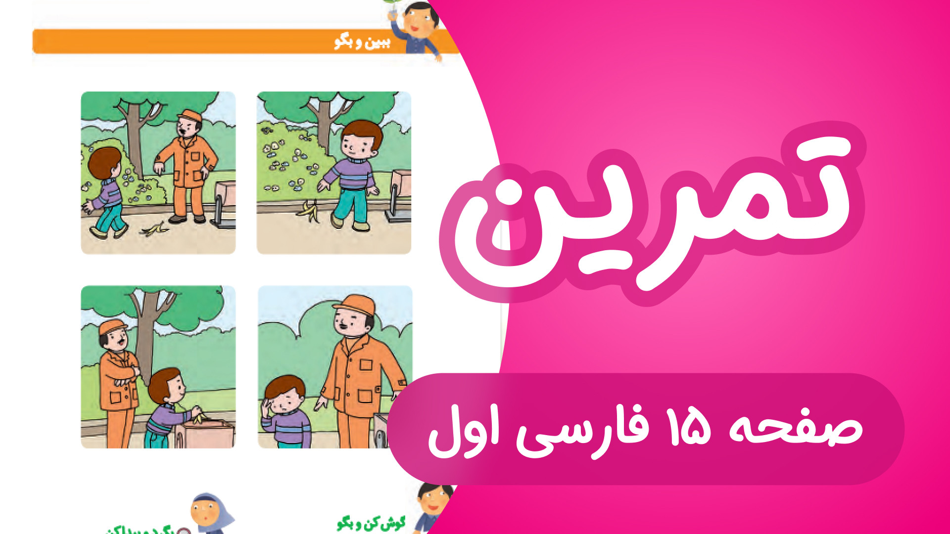 در این ویدیو از مدرسه نارنگی، معلم خوبمون خانم لبیب تمرینهای مربوط به نگاره 6 فارسی اول ابتدایی رو آموزش میدن. این بخش شامل فعالیتهای ببین و بگو، گوش کن و بگو و بگرد و پیدا کن است که به بچهها کمک میکنه تصویرها و صداها رو بهتر درک کنن. این ویدیو مناسب: • دانشآموزان کلاس اول دبستان برای تمرین درس فارسی • والدینی که میخواهند در خانه همراه فرزندشان کار کنند • مرور و تقویت نگاره ششم و مهارتهای شنیداری و گفتاری در این تمرین یاد میگیریم: • نگاه دقیق به تصاویر و پاسخ به پرسشها (ببین و بگو) • شنیدن و تشخیص صداها و کلمات (گوش کن و بگو) • تقویت مهارت صداکشی و روخوانی فارسی اول برای دیدن همهی تمرینها، نگارهها و درسهای فارسی اول (صفحهبهصفحه و درسبهدرس) کانال مدرسه نارنگی رو دنبال کنید. نظرات و تجربههای شما باعث دلگرمی ماست