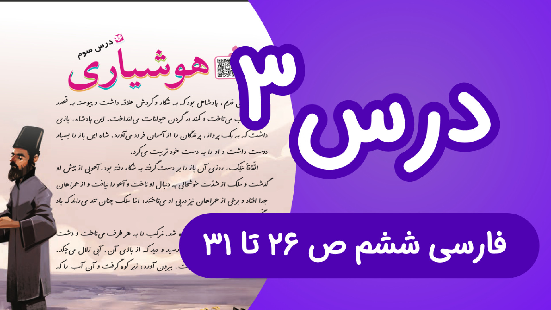 امروز میریم سراغ درس سوم که عنوانش هست هوشیاری. در این ویدیو اول روخوانی درس انجام میشه و بعد کلمات سخت و کلمات متضاد و هم خانواده رو به صورت جداگانه بررسی میکنیم، بعدش هم میریم سراغ تمرینات این درس و بخوان و حفظ کن که یعنی تمام صفحات مربوط به این درس رو در این ویدیو میتونید ببینید. راستی ویدیوی هر کدوم از این بخش ها به صورت جداگانه هم در کانال مدرسه نارنگی موجوده.