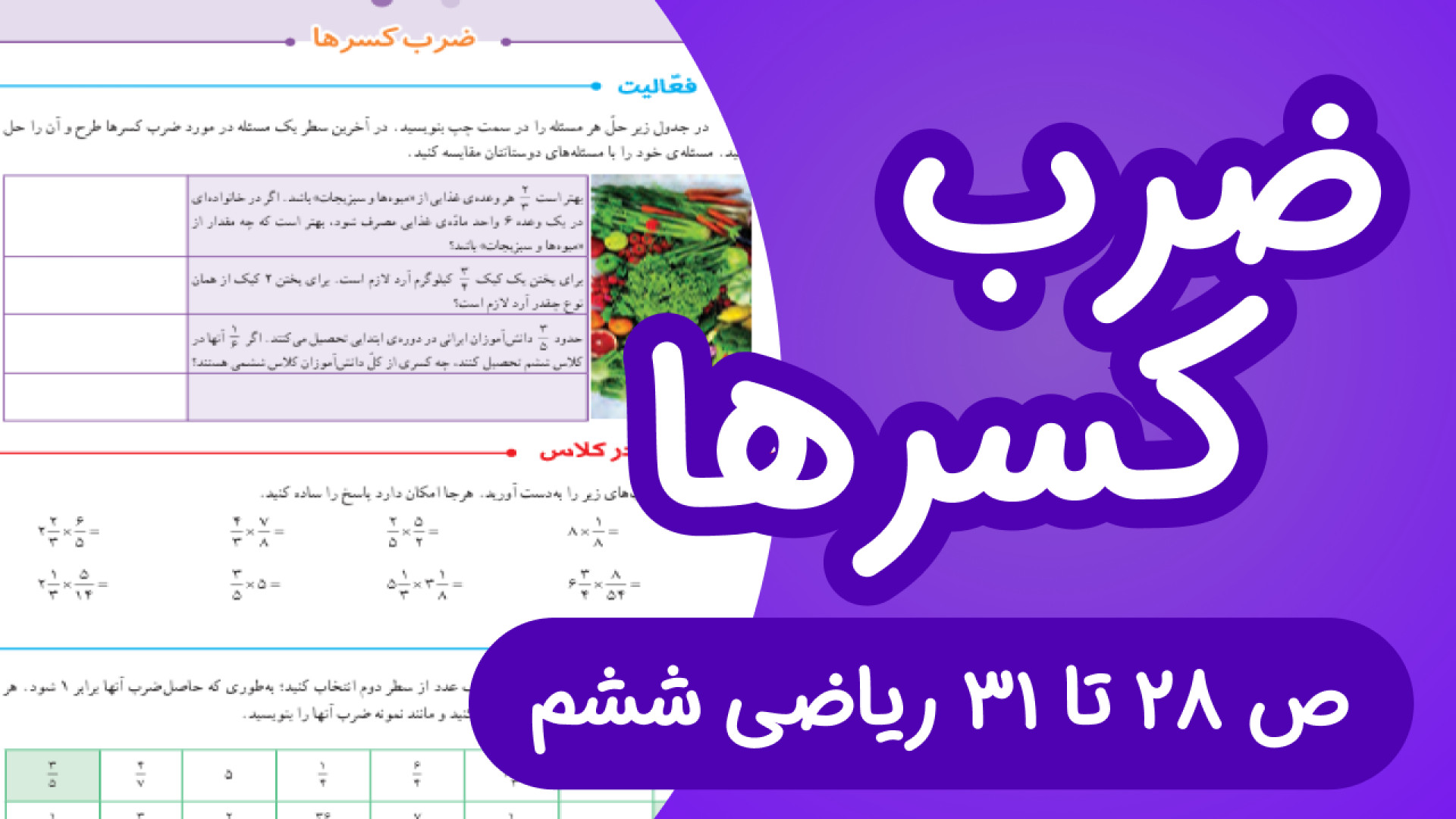 و حالا بریم برای دومین مبحث از فصل دوم کتاب ریاضی ششم. با دیدن این ویدیو تمام تمرینات ضرب کسرها رو میتونید حل کنید تا کاملا به این مبحث مسلط بشین. هر سوال یا نظری داشتین حتما بهمون بگین و یادتون نره که کانال مدرسه رو دنبال کنین تا سریع تر ویدیوهای دلخواهتون رو پیدا کنین.