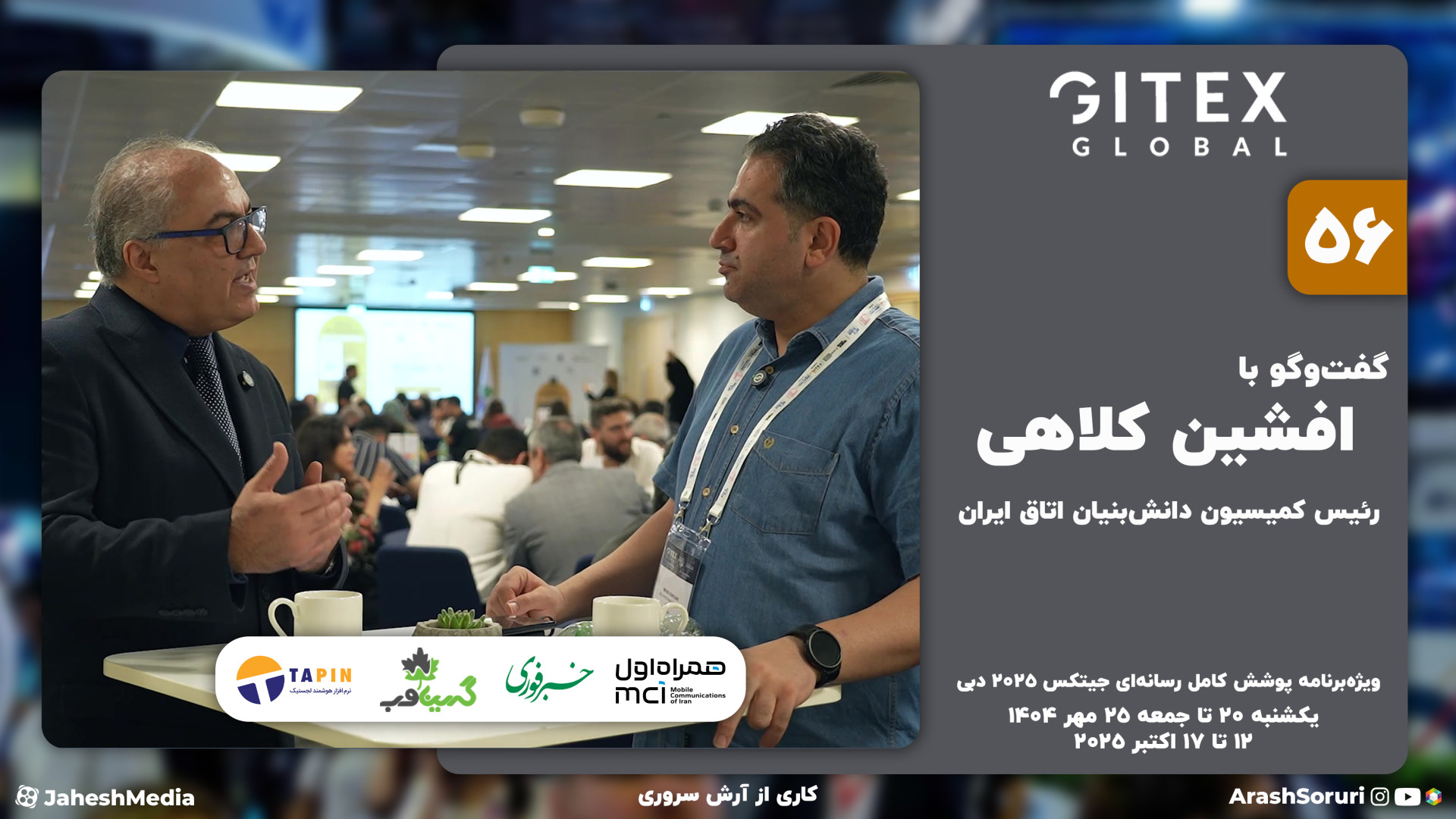 ویژهبرنامه پوشش کامل رسانهای جیتکس 2025 دبی کاری از آرش سروری با حمایت: mci.ir tapin.ir greenweb.ir khabarfoori.com در این قسمت گفتوگویی داریم با افشین کلاهی، رئیس کمیسیون دانشبنیان اتاق ایران