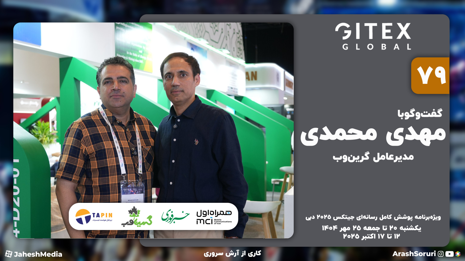 ویژهبرنامه پوشش کامل رسانهای جیتکس 2025 دبی کاری از آرش سروری با حمایت: mci.ir tapin.ir greenweb.ir khabarfoori.com در این قسمت گفتوگویی داریم با مهدی محمدی، مدیرعامل گرینوب
