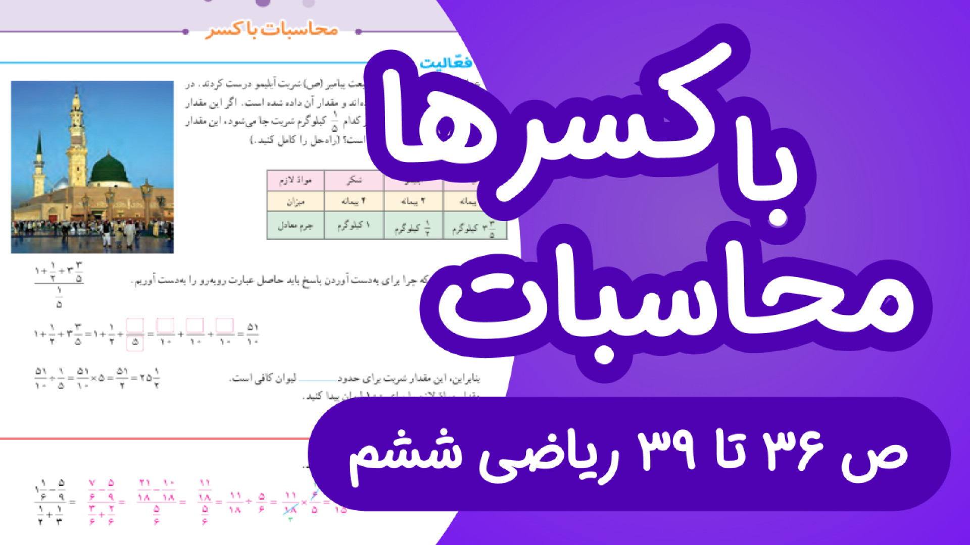 و حالا بریم برای آخرین مبحث از فصل دوم کتاب ریاضی ششم. با دیدن این ویدیو تمام تمرینات مبحث محاسبات با کسرها رو میتونید حل کنید تا کاملا به این مبحث مسلط بشین. هر سوال یا نظری داشتین حتما بهمون بگین و یادتون نره که کانال مدرسه رو دنبال کنین تا سریع تر ویدیوهای دلخواهتون رو پیدا کنین.