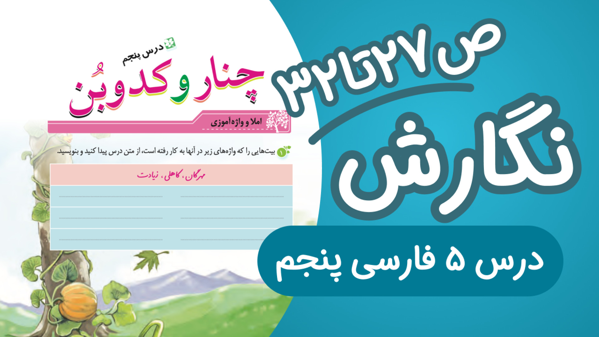 و حالا میریم سراغ نگارش درس پنجم. با دیدن این ویدیو تمام تمرینات صفحات 27 تا 32کتاب نگارش پنجم رو میتونید انجام بدین تا خیالتون از این درس راحت باشه. نظرات و پیشنهادات شما خیلی برای ما کمک کننده است و اینکه اگر دوست دارید به تمام ویدیوهای نگارش پنجم دسترسی داشته باشین حتما به کانال مدرسه نارنگی سر بزنید.
