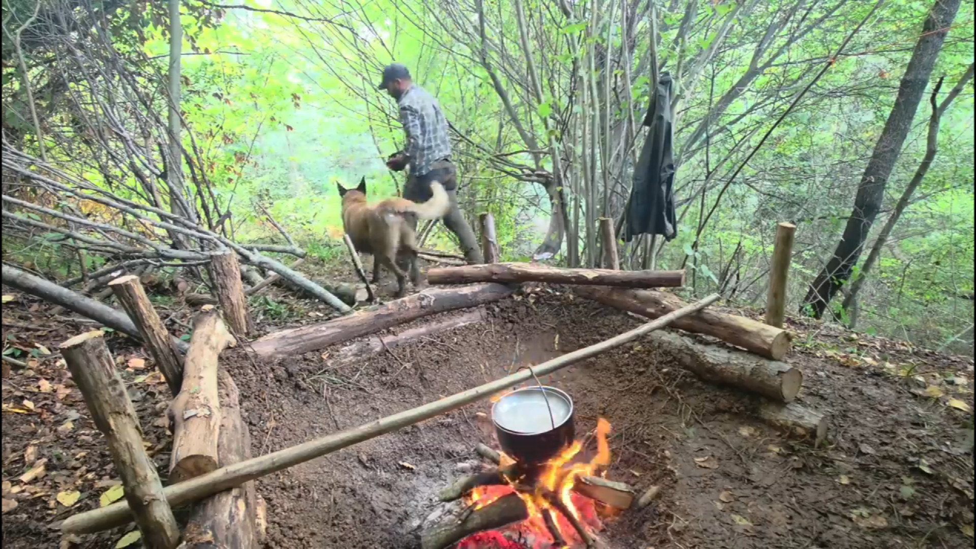 کمپینگ بوشکرفت و ساخت پناهگاه از درختان جنگلی به همراه سگم برپایی آتش هیزمی آشپزی در دل جنگلهای ناب شمال و پخت دیپ پنیر روی هیزم