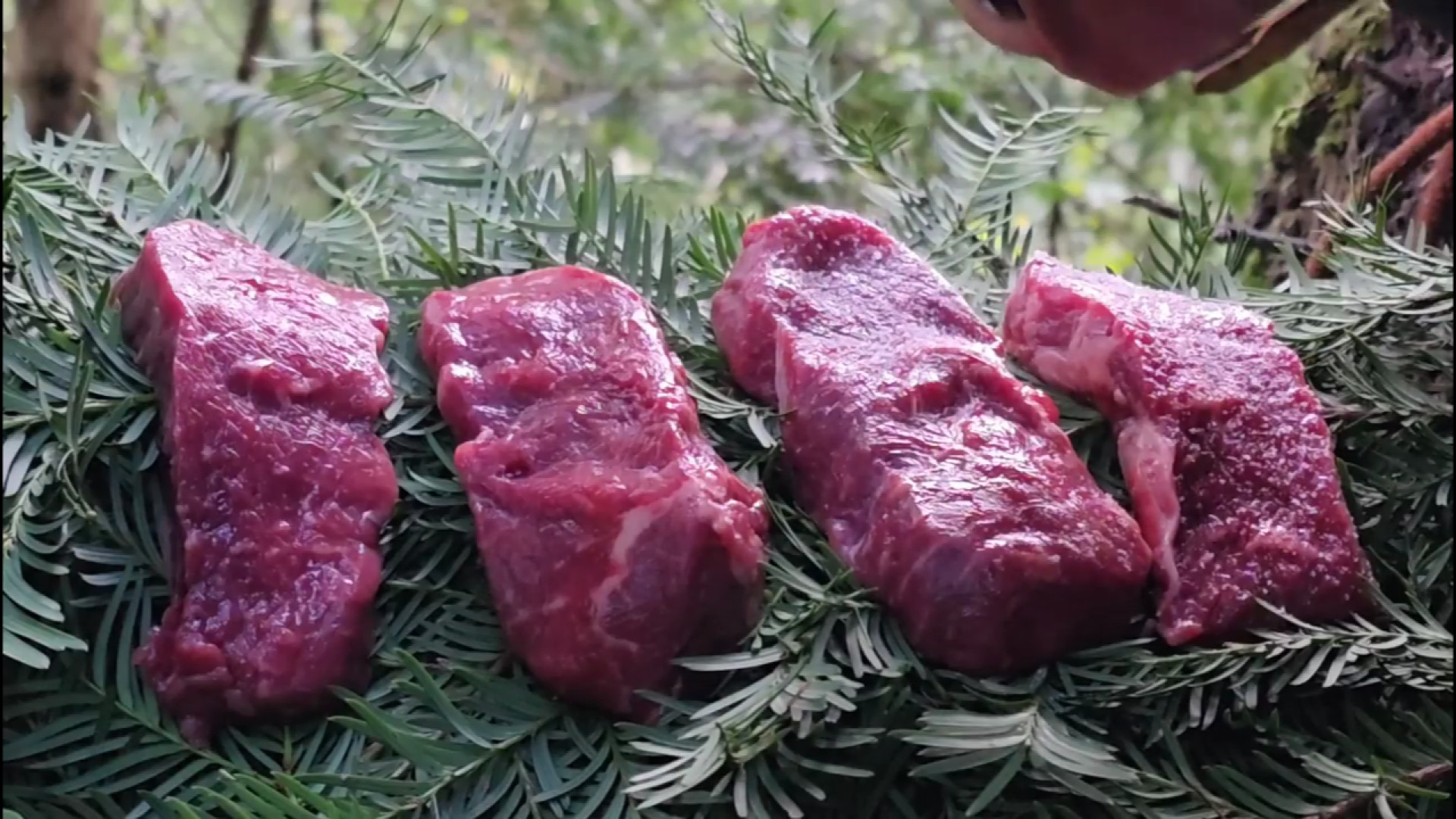 کمپینگ بوشکرفت در جنگلهای شمال به همراه سگم ساخت کلبه چوبی در جنگل برپایی آتش هیزمی و دم کردن چای هیزمی کباب گوشت قرمز و آشپزی در طبیعت روی هیزم