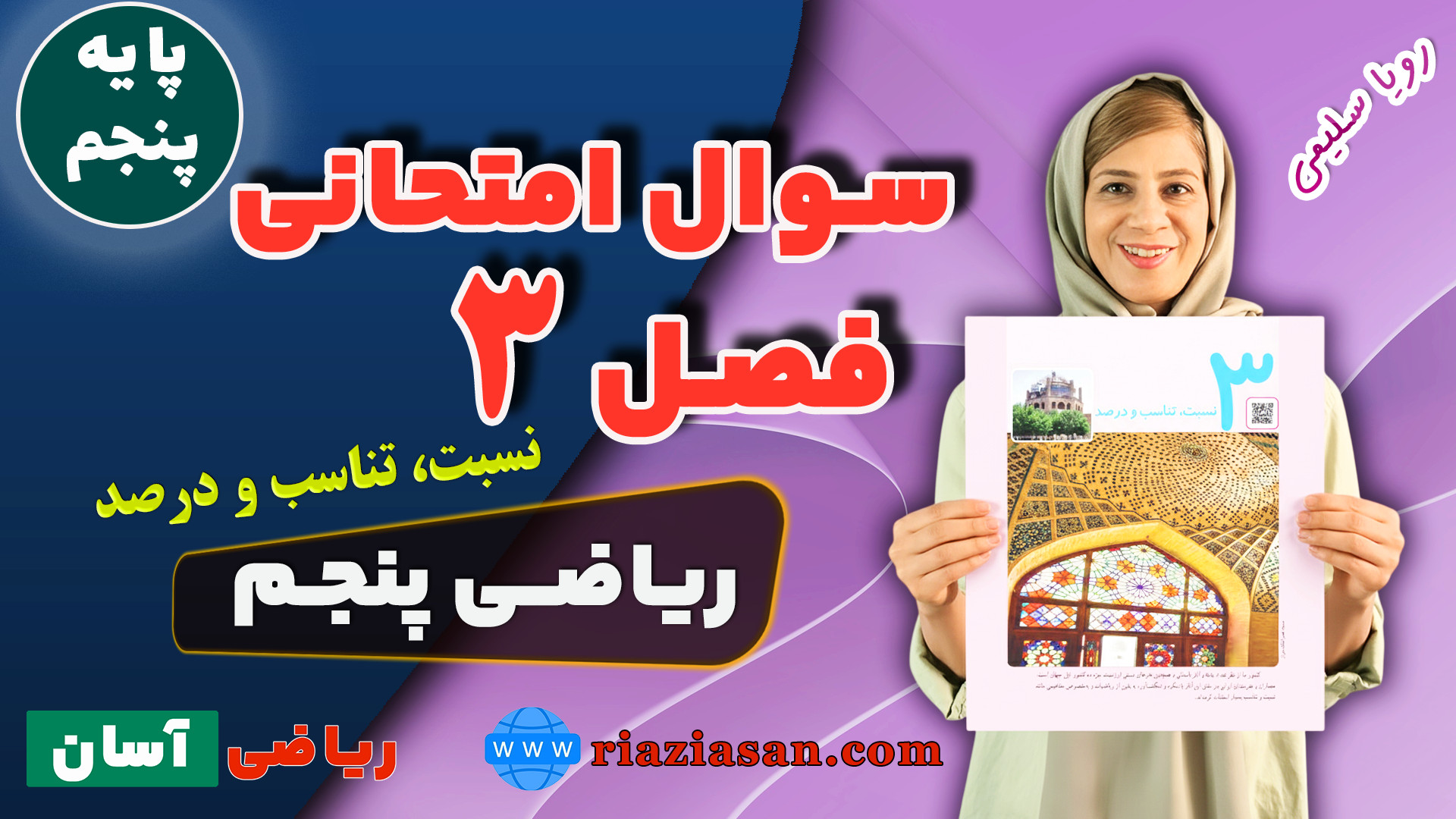 سلام به شما دانش‌آموزان عزیز کلاس پنجم، امیدوارم شاد و تندرست باشید. توی این ویدئو چندتا نمونه سوال مهم از سوال‌های مهم امتحانی فصل سوم (نسبت، تناسب و درصد) کتاب پنجم که مربوط به سوالات پرتکرار و مهم امتحانی هست رو حل کردم. اگه این ویدئو رو با دقت ببینی مطمئن هستم میتونی به سوال‌هایی که از فصل ۳ کتاب ریاضی پنجم دبستان میاد به خوبی جواب بدی. دانلود PDF سوال‌ها: https://dl.riaziasan.com/class5/nemoone_soal/PDF-Nsemf35.pdf ------------------------------------------- عضویت در کانال ایتا: https://eitaa.com/riaziasansalimi
