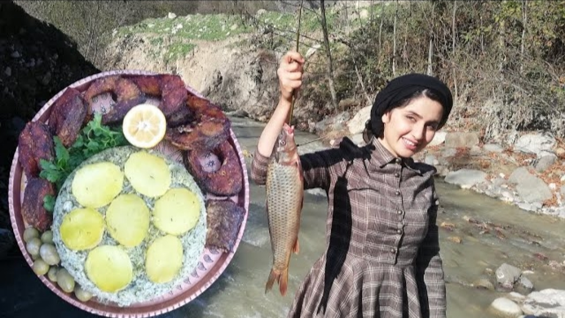 پخت سبزی پلو با ماهی شمالی وسط رودخونه