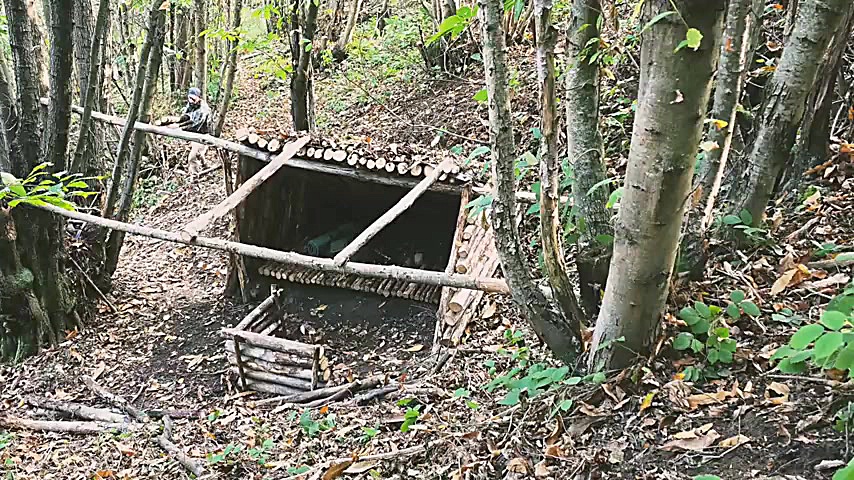 ساخت کلبه ای اسرار آمیز در اعماق جنگل با چوبهای جنگلی به همراه سگم آشپزی در طبیعت روی هیزم