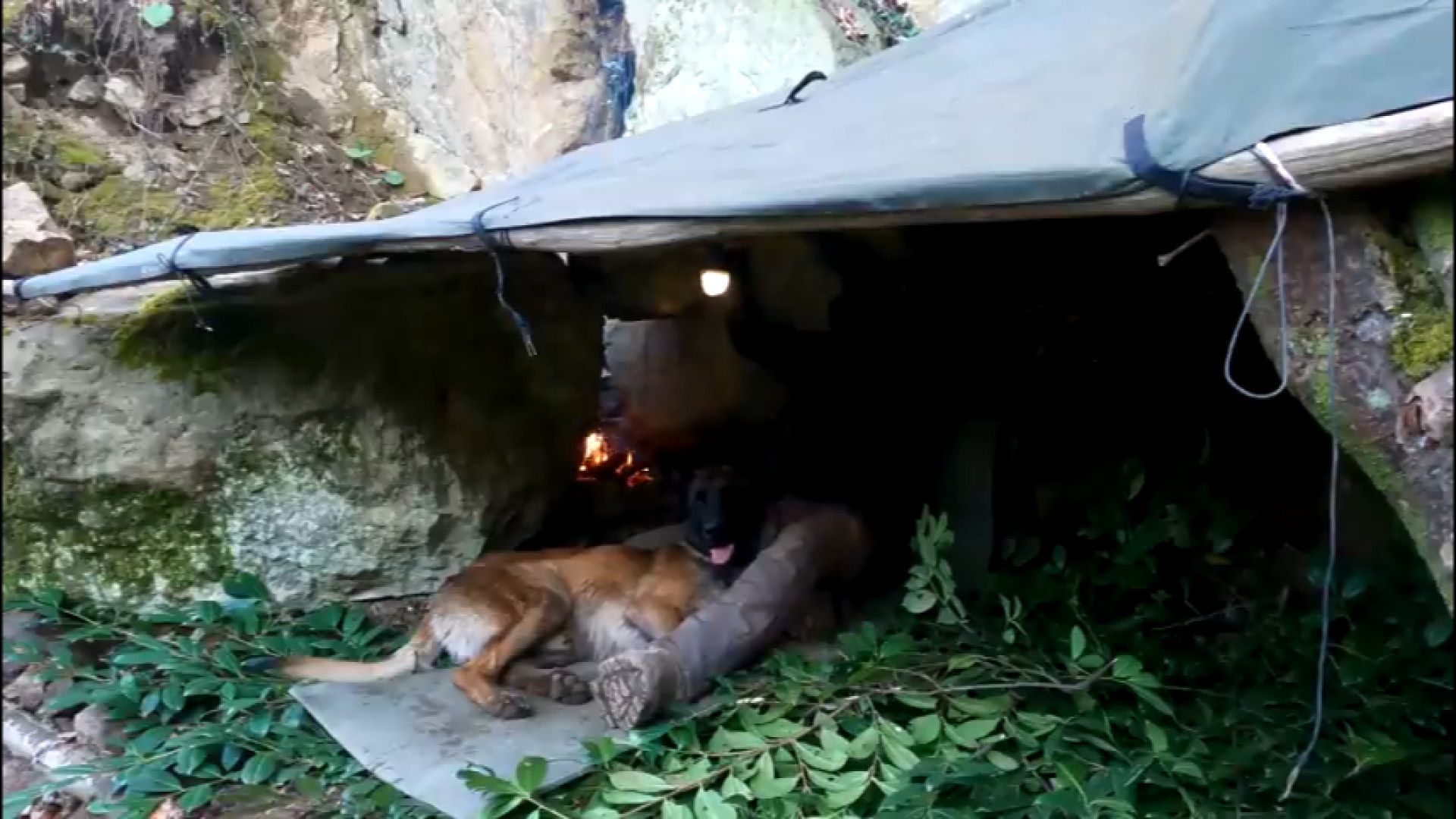 کمپینگ در جنگلهای پاییزی به همراه سگم در چادری در دل غاری صخره ای در دل جنگلهای شمال برپایی آتش هیزمی آشپزی در طبیعت پاییزی