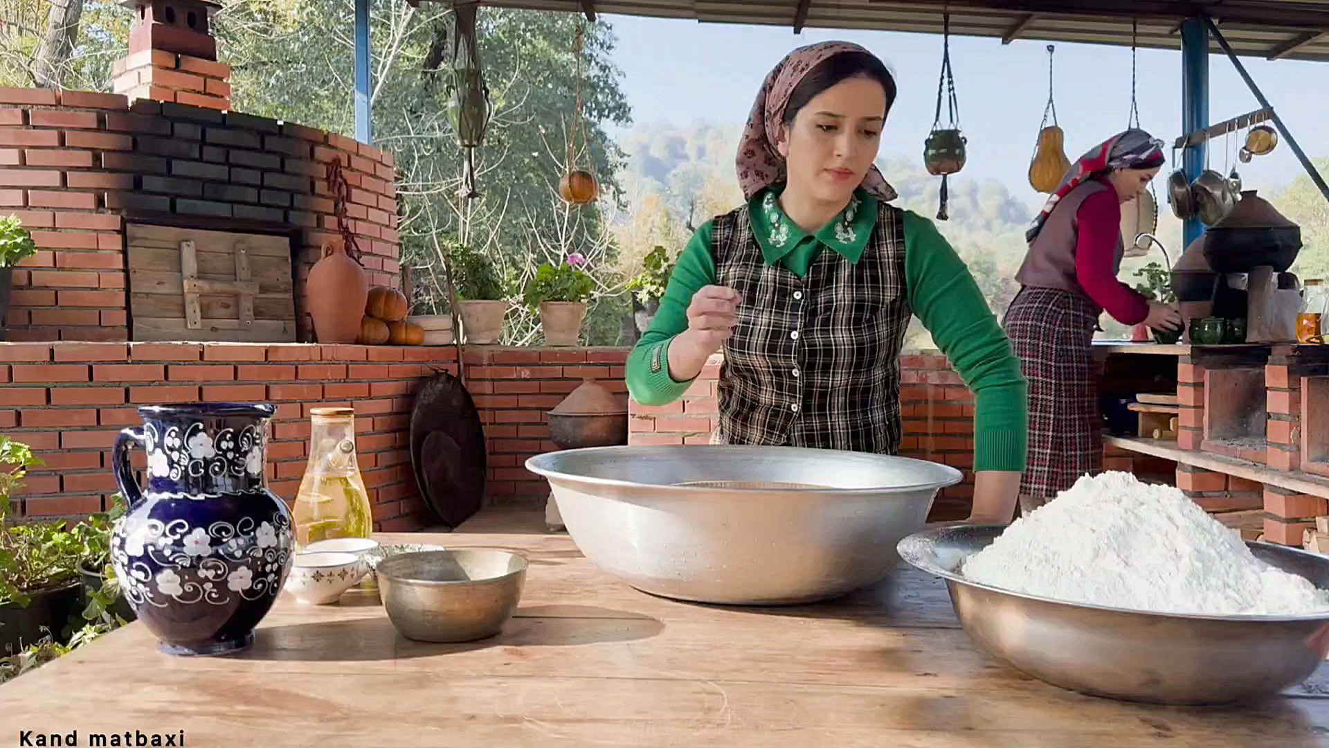 پخت کلم و کباب تازه در کلبه چوبی توسط دختران روستا