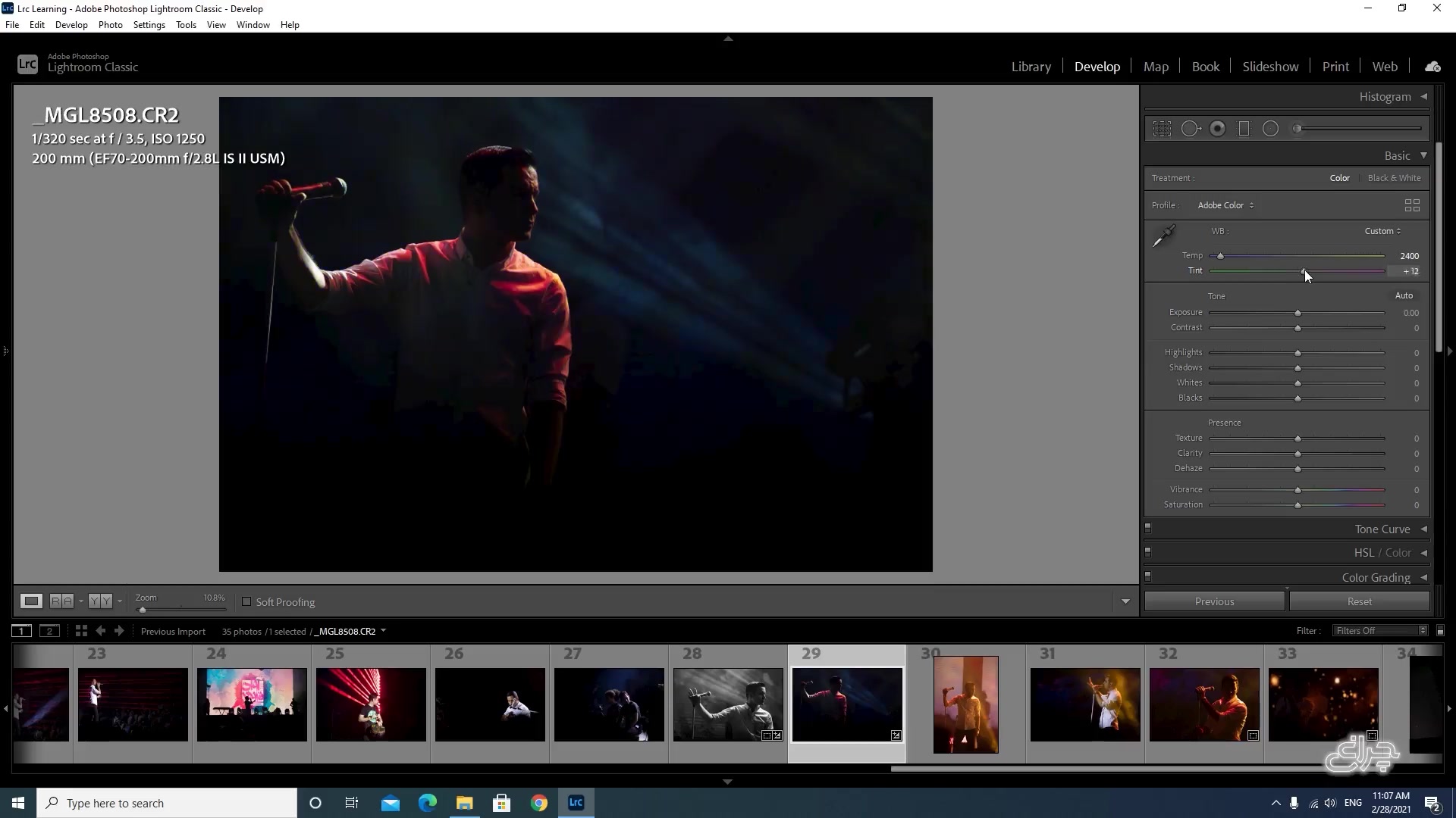 در این قسمت از آموزش لایت روم به سراغ سه بخش کلیدی در فرآیند ادیت حرفه‌ای عکس می‌رویم. در این ویدیو یاد می‌گیرید چگونه در پنل Basic تنظیمات اصلی نور، کنتراست، وایت بالانس و تون تصویر را به‌صورت اصولی انجام دهید و پایه‌ی ادیت خود را بسازید. سپس وارد بخش HSL/Color می‌شویم تا کنترل دقیق‌تری روی رنگ‌ها، اشباع و روشنایی هر رنگ داشته باشید و حال‌وهوای تصویر را حرفه‌ای تنظیم کنید. در ادامه، ابزار Graduated Filter آموزش داده می‌شود تا بتوانید اصلاحات انتخابی مثل تنظیم نور و رنگ را روی بخش‌های مختلف عکس اعمال کنید. این آموزش برای کسانی طراحی شده که می‌خواهند مهارت خود را در آموزش ادیت عکس با لایت روم ارتقا دهند و به سطح بالاتری از ادیت حرفه‌ای عکس برسند. اگر به دنبال یک پکیج لایت روم کامل و کاربردی هستید، این بخش یکی از مهم‌ترین مراحل مسیر یادگیری شماست. Basic 00:25 HSL/Color 00:52 Graduated Filter 03:07