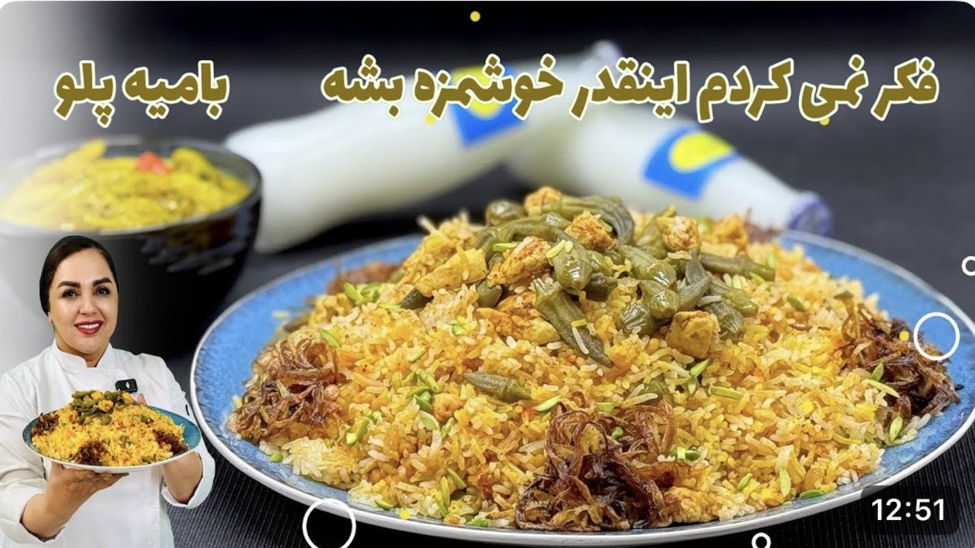 بامیه پلو مجلسی و خوش طعم | این پلو مخلوط رو اصلا از دست نده —-------------------------------------- جهت شرکت در کلاسهای حضوری و دریافت گواهینامه از سازمان فنی و حرفه ای ما را در اینستاگرام دنبال کنید و از طریق تلگرام و تلفن های آموزشگاه عطر سیب اقدام به ثبت نام کنید ۰۲۱۴۴۹۶۱۸۵۰ _۰۹۱۰۲۳۰۵۱۳۷ —--------------------------------- سلام به همراهای خوشذوق و خوشاشتها ️ توی این ویدیو قراره یه مدل خاص و متفاوت از پلو های مخلوط رو با هم درست کنیم که هم از نظر طعم خاصه، هم ظاهری شیک و اشتهابرانگیز داره. این بامیه پلو که از غذاهایی هست که کمتر بهشون توجه میشه طعم فوقالعاده ای داره و به سادگی درست میشه و یه انتخاب فوقالعاده برای سفرههای مهمونیه یا حتی یه ناهار خاص توی خونه! طعم بامیه و ترکیب ادویه های خوشعطر، کنار هم یه پلو متفاوت و خوشخوراک میسازه که امتحان کردنش واقعاً میارزه. همهی مراحل پخت رو با جزئیات و نکتههای کاربردی برات توضیح دادم تا به راحتی توی خونه بتونی یه بامیه پلو متفاوت و لذیذ درست کنی که همه ازش تعریف کن
