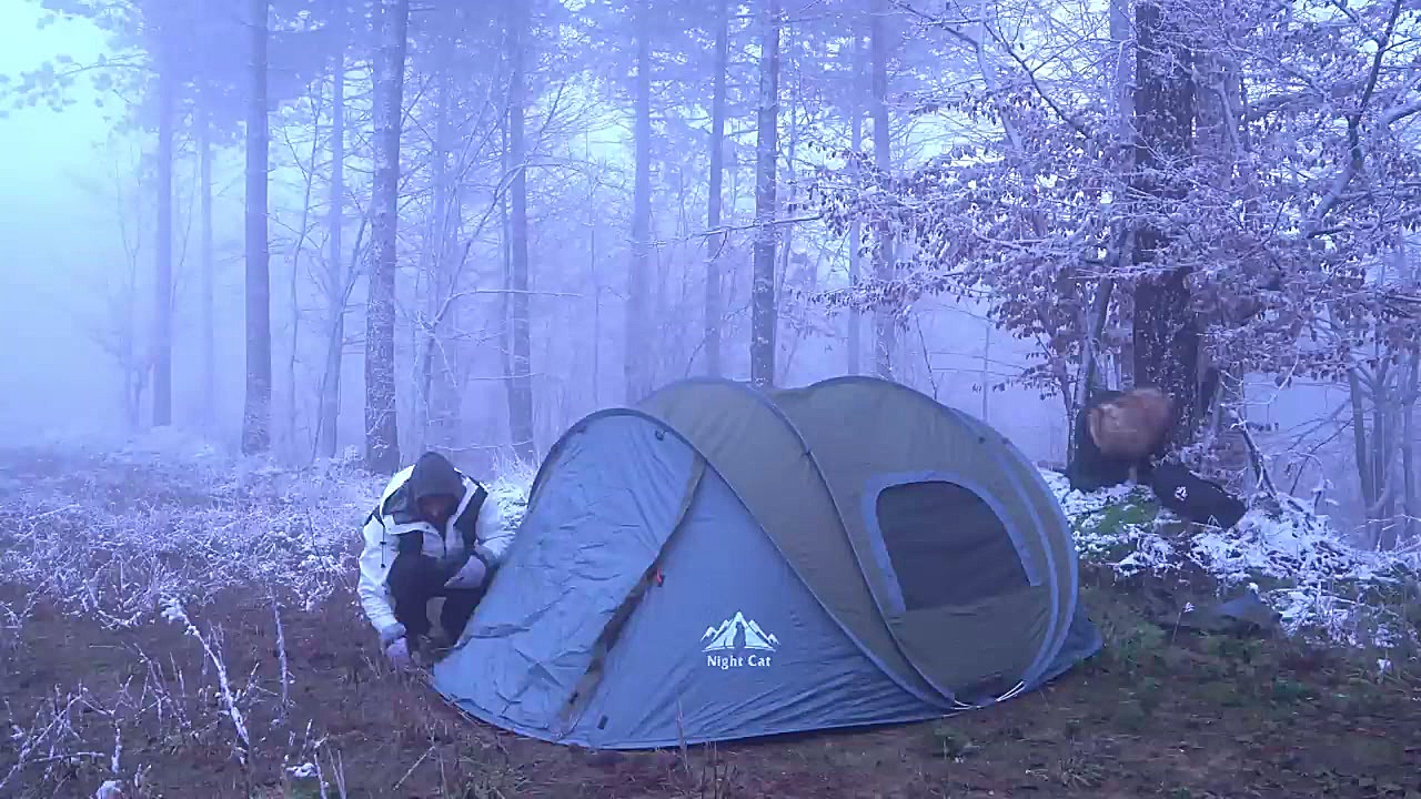 کمپینگ بقا در یک شبانه روز سرد و یخبندان زمستانی در اعماق جنگل در دمای منفی ۱۷ درجه سانتیگراد برپایی آتش هیزمی و پخت استیک