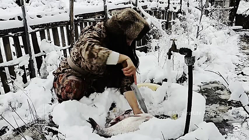 پخت کوکی ماهی در روستای برفی