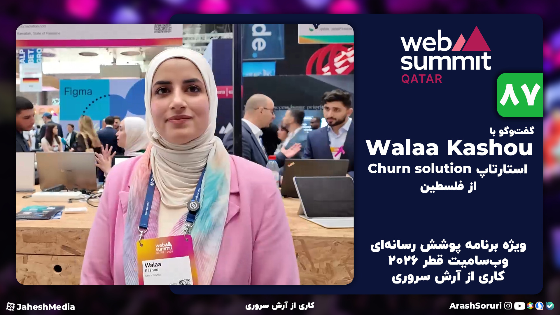 ویژه برنامه پوشش رسانهای وبسامیت قطر 2026 کاری از آرش سروری در این قسمت گفتوگویی داریم با Walaa Kashou از استارتاپ Churn solution، کشور فلسطین کانال ها و صفحات داخلی ما: Soruri.com rubika.ir/@arashsoruri splus.ir/arashsoruri ble.ir/arashsoruri Aparat.com/jaheshmedia از داخل تنظیمات ویدیو، حتما زیرنویس فارسی را فعال کنید.