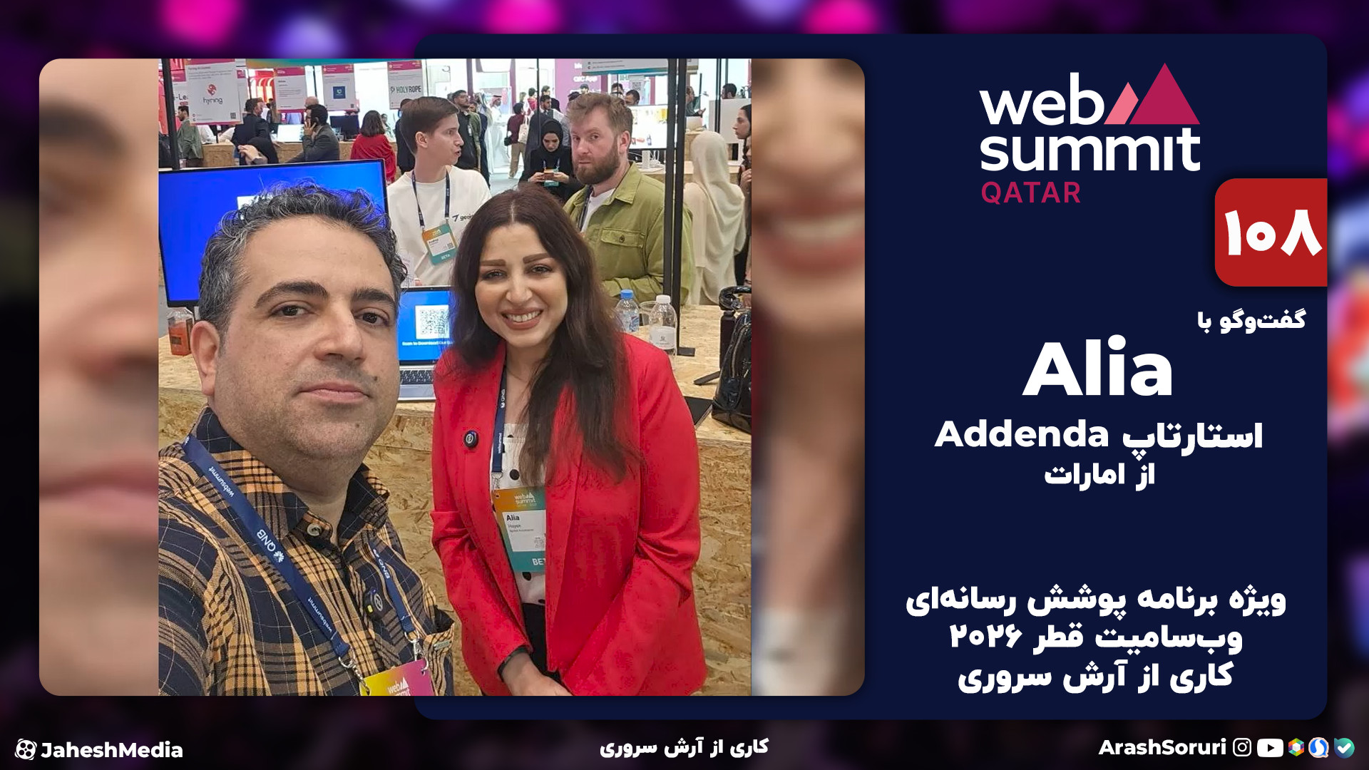 ویژه برنامه پوشش رسانهای وبسامیت قطر 2026 کاری از آرش سروری در این قسمت گفتوگویی داریم با Alia از استارتاپ Addenda، کشور امارات کانال ها و صفحات داخلی ما: Soruri.com rubika.ir/@arashsoruri splus.ir/arashsoruri ble.ir/arashsoruri Aparat.com/jaheshmedia از داخل تنظیمات ویدیو، حتما زیرنویس فارسی را فعال کنید.