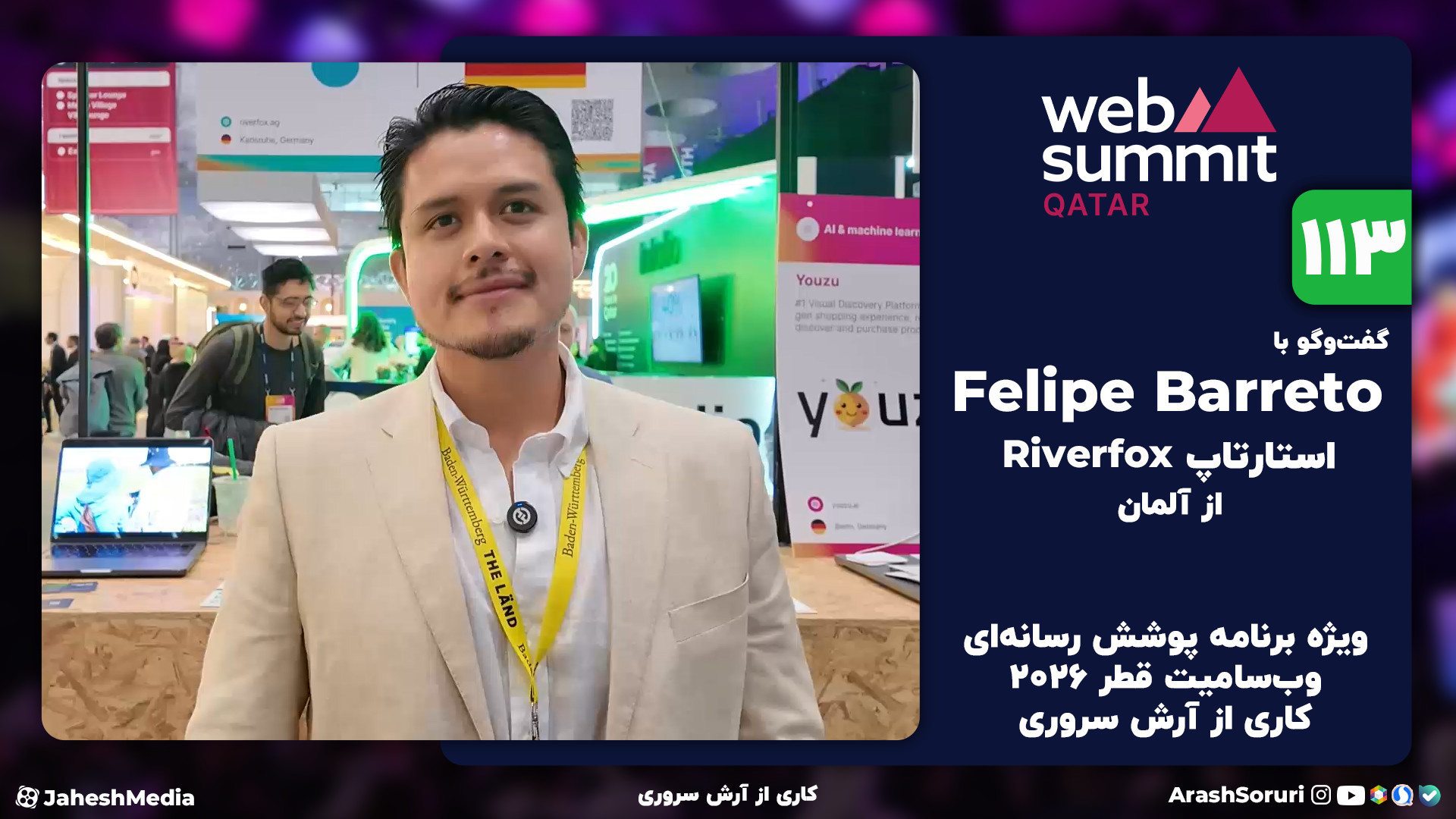 ویژه برنامه پوشش رسانه‌ای وب‌سامیت قطر 2026 کاری از آرش سروری در این قسمت گفت‌وگویی داریم با Felipe Barreto از استارتاپ Riverfox، کشور آلمان کانال ها و صفحات داخلی ما: Soruri.com rubika.ir/@arashsoruri splus.ir/arashsoruri ble.ir/arashsoruri Aparat.com/jaheshmedia از داخل تنظیمات ویدیو، حتما زیرنویس فارسی را فعال کنید.