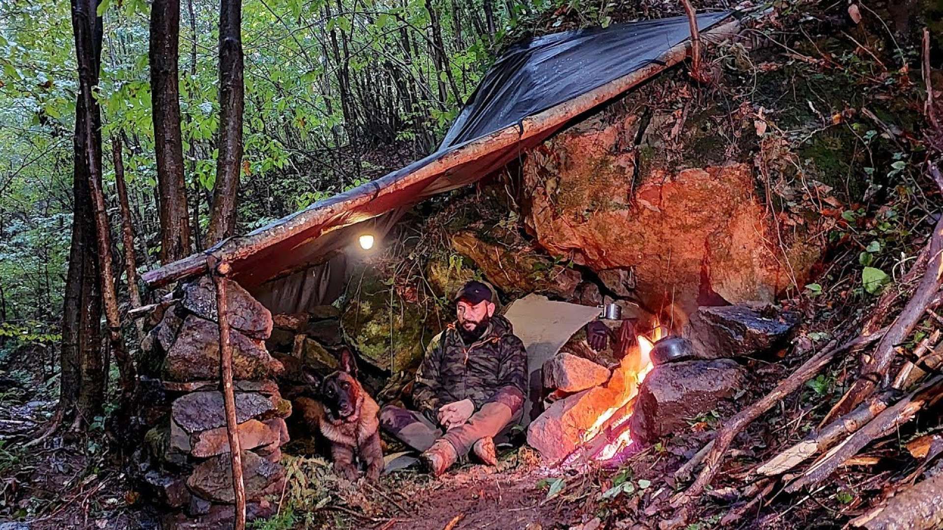 کمپ بقا و ساخت پناهگاه از شاخ و برگ درختان برای اقامت شبانه روزی در اعماق جنگلهای شمال آشپزی آرامش بخش در دل طبیعت بکر و برپایی آتش با هیزمی
