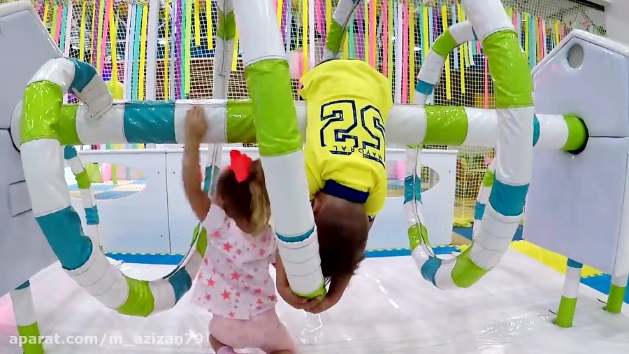 روما و دایانا با پریدن بر روی ترامپولین های مختلف در زمین بازی سرپوشیده داشتند سرگرم می شوند.