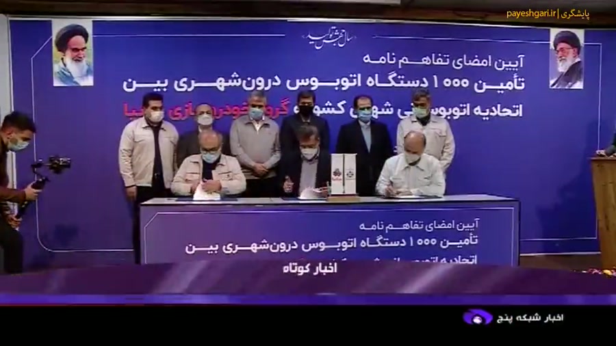 شبکه پنج - 17 دی 99 - 24:00| سایپا و اتحادیه اتوبوسرانی شهری کشور تفاهمنامه تأمین هزار دستگاه اتوبوس شهری امضا کردند. مدیرعامل گروه خودروسازی سایپا گفت: در این تفاهمنامه 20 درصد اتوبوسها را به صورت CBU واردات قطعات منفصله و 80 درصد بقیه را با داخلیسازی بیش از 50 درصد تولید خواهیم کرد.