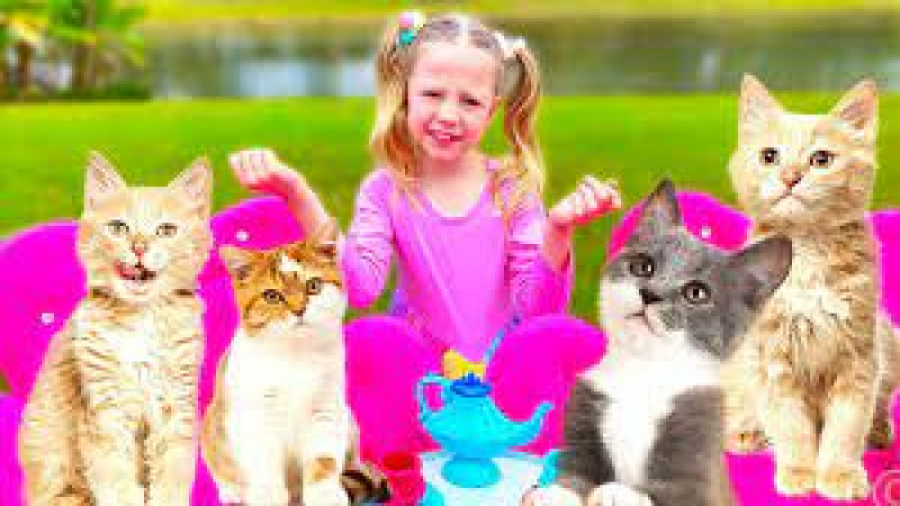 ناستیا با گربه هایی که در یک درخت پنهان شده اند بازی می کند